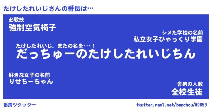 | 男性向けラノベタイトル風あだ名 | 『たけしたれいじの憂鬱』 |