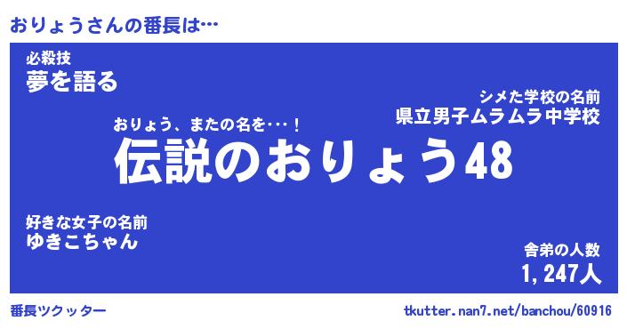 | 肩書あだ名 | 『おりょう店長』『おりょう総理大臣』 |