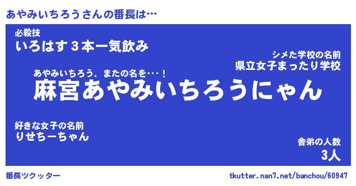 | ヒーロー風カッコイイあだ名 | 『スーパーアヤミイチロウ』 |