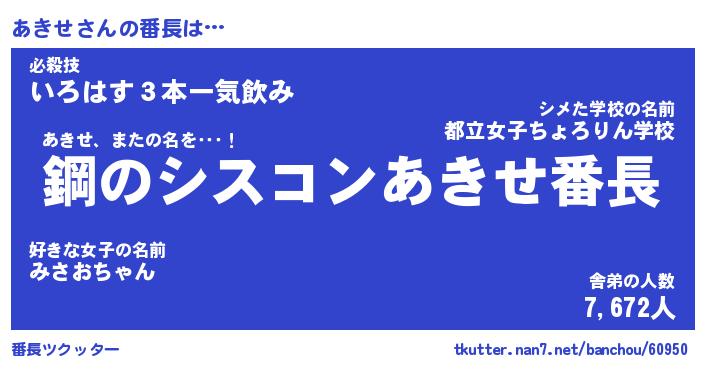 | 意味不明あだ名 | 『ペロリンあきせ』『あきせフォーエバー』 |