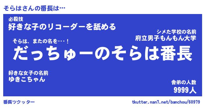 | 意味不明あだ名 | 『ペロリンそらは』『そらはフォーエバー』 |