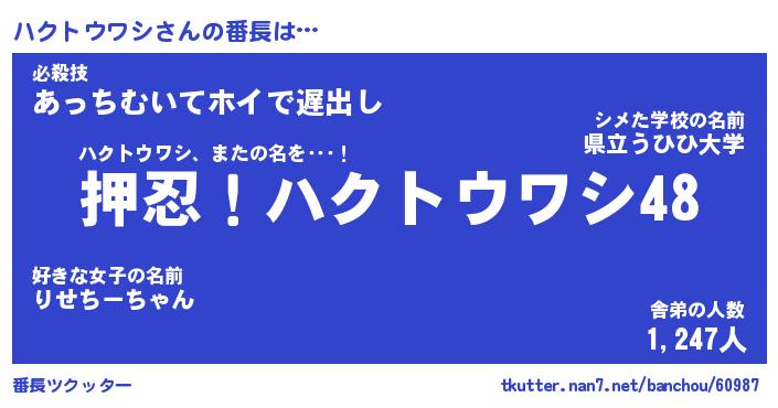 | ヘコむあだ名 | 『ハクふぇ~』『豆乳』『ハクっ子』 |