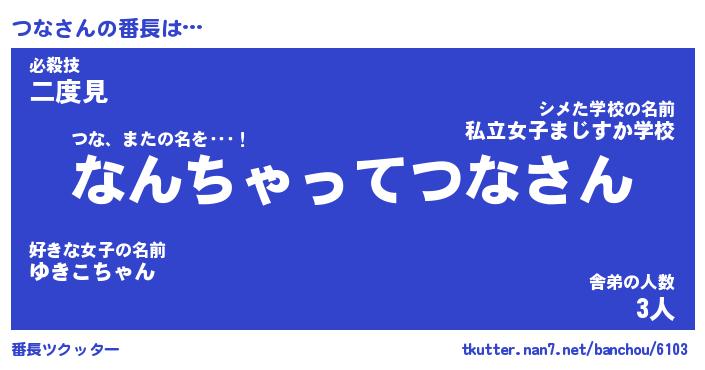 | 2回繰り返すあだ名 | 『つなつな』『つつなな』『なあなあ』 |