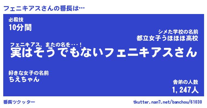 | 恥ずかしいあだ名 | 『プリティーフェニキアス』『フェっちょ』 |