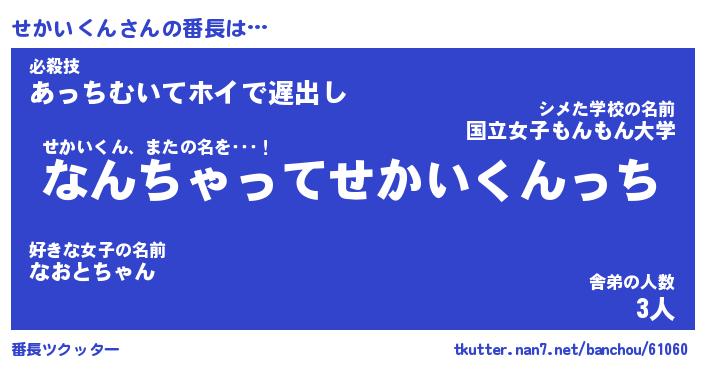| 肩書あだ名 | 『せかいくんCEO』『せかいくん大統領』 |