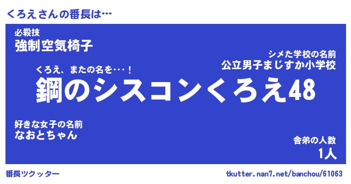 | ヘコむあだ名 | 『くろもー』『酢こんぶ』『くろっ子』 |