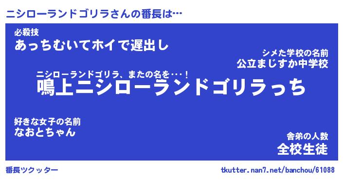 | 料理風あだ名 | 『ネギたっぷりニシローランドゴリラの南蛮漬け』 |