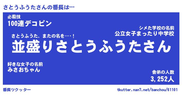 | ヒーロー風カッコイイあだ名 | 『スーパーサトウフウタ』『幻影騎士サト』 |