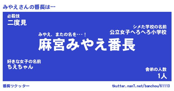 | ヒーロー風カッコイイあだ名 | 『スーパーミヤエ』『ウルトラみやえマン』 |
