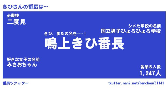 | ヒーロー風カッコイイあだ名 | 『スーパーキヒ』『ウルトラきひマン』 |