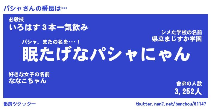 | ファンタジー風あだ名 | 『パシフェル』『エターナルパシャー』 |