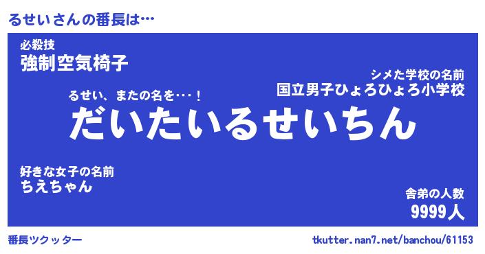 | ヘコむあだ名 | 『るせもー』『つくし』『るせお』 |