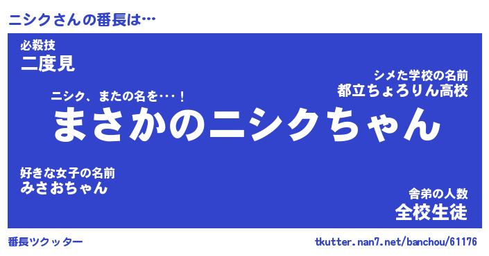 | ヒーロー風カッコイイあだ名 | 『スーパーニシク』『ウルトラニシクマン』 |
