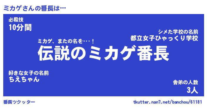 | 意味不明あだ名 | 『ペロリンミカゲ』『ミカゲフォーエバー』 |