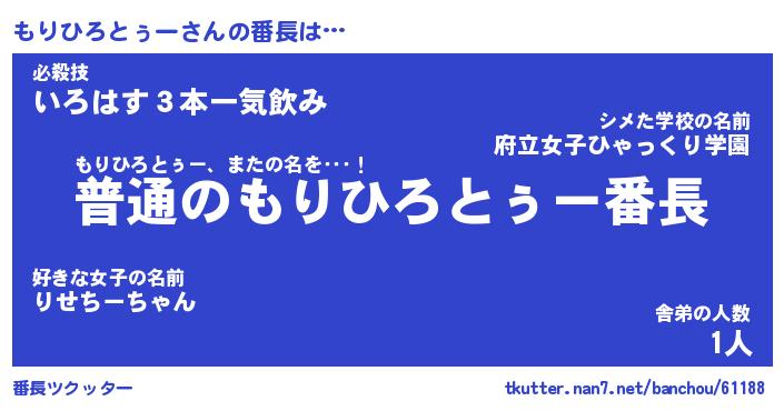 | ヘコむあだ名 | 『もりもー』『なまこ酢』『もりっ子』 |