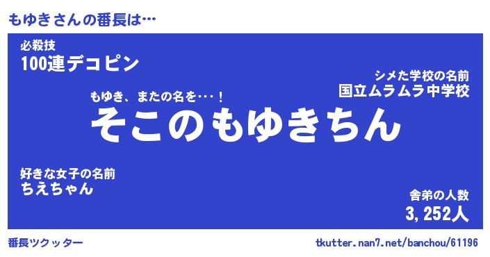 | ヘコむあだ名 | 『もゆにゅー』『つくし』『もゆっ子』 |