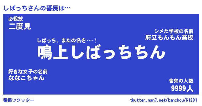 | ピコ太郎風あだ名 | 『シコ四郎』『ピシ三郎』『シバ史郎』 |