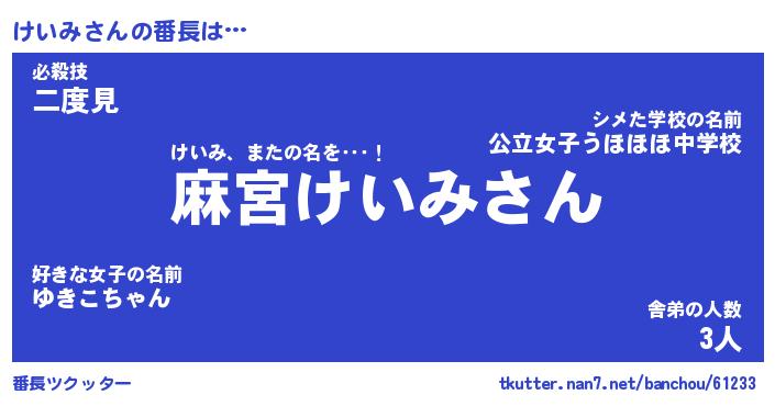 | 意味不明あだ名 | 『ペロリンけいみ』『けいみフォーエバー』 |