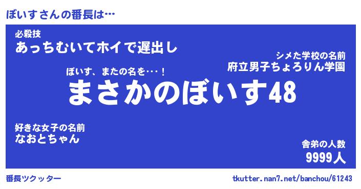 | 肩書あだ名 | 『ぼいす店長』『ぼいす国家主席』 |