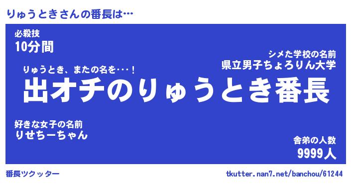 | 伝説のあだ名 | 『伝説のスナイパーりゅうとき』 |