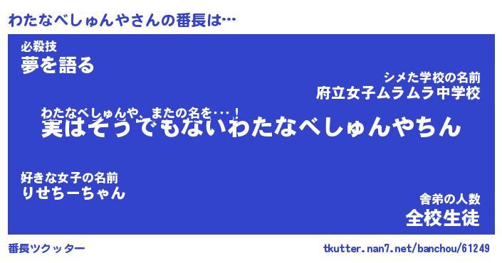 | 肩書あだ名 | 『わたなべしゅんや店長』 |