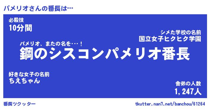 | ヒーロー風カッコイイあだ名 | 『スーパーパメリオ』『銀牙騎士パメ』 |