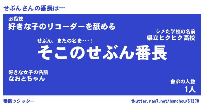 | ヘコむあだ名 | 『せぶにー』『酢こんぶ』『せぶを』 |