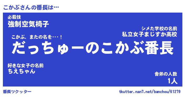| 伝説のあだ名 | 『伝説のスナイパーこかぶ』 |