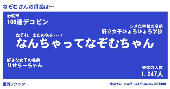 | ファンタジー風あだ名 | 『ナゾフェル』『エターナルナゾムー』 |