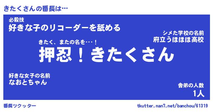 | 意味不明あだ名 | 『ペロリンきたく』『きたくフォーエバー』 |