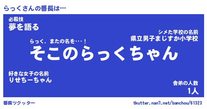 | 意味不明あだ名 | 『ペロリンらっく』『らっくフォーエバー』 |