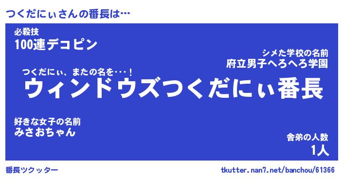 | ヒーロー風カッコイイあだ名 | 『スーパーツクダニィ』『黄金騎士ツク』 |