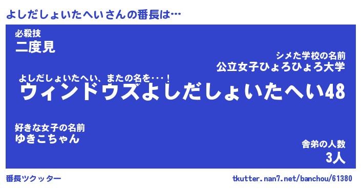| ポケモン風あだ名 | 『ヨシチュウ』『ヨシダダネ』 |
