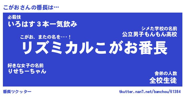 | ピコ太郎風あだ名 | 『ココ三郎』『ピコ次郎』『コガ史郎』 |