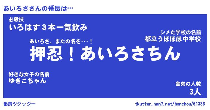 | 意味不明あだ名 | 『ペロリンあいろさ』『永久保存あいろさ』 |