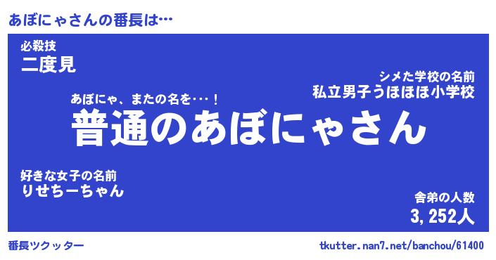| 肩書あだ名 | 『あぼにゃCEO』『あぼにゃ総理大臣』 |