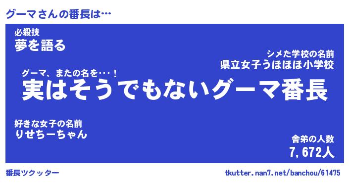 | ポケモン風あだ名 | 『グーチュウ』『グーマダネ』 |