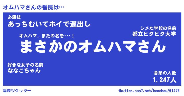 | ファンタジー風あだ名 | 『オムフェル』『エターナルオムハマー』 |