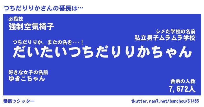 | ヒーロー風カッコイイあだ名 | 『スーパーツチダリリカ』『魔戒騎士ツチ』 |