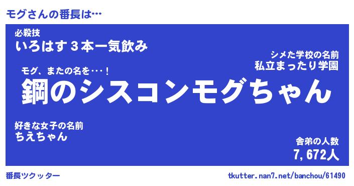 | 意味不明あだ名 | 『ペロリンモグ』『モグフォーエバー』 |
