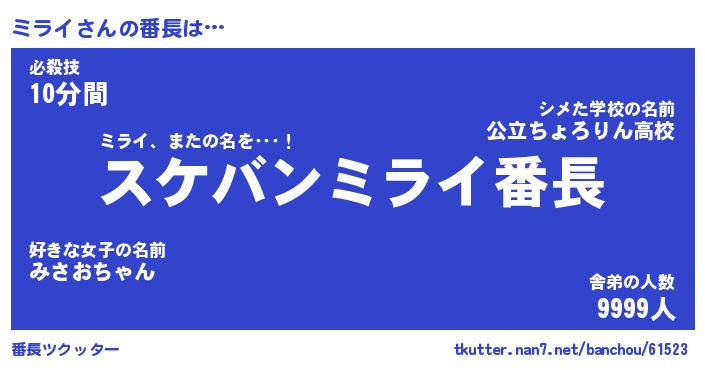 | 意味不明あだ名 | 『ペロリンミライ』『ミライフォーエバー』 |
