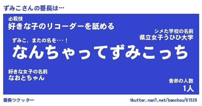 | ヘコむあだ名 | 『ずみっふぃ~』『なまこ酢』 |