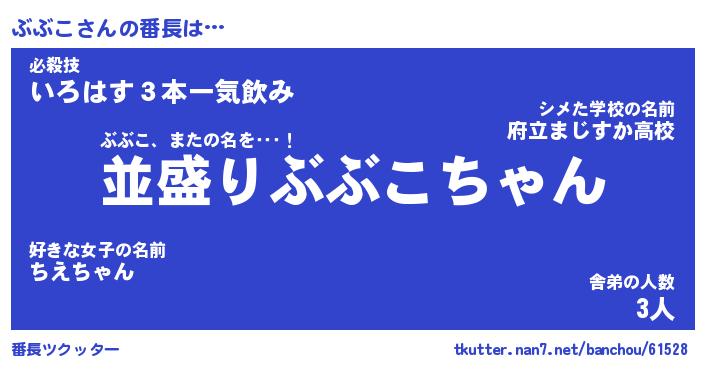 | 2回繰り返すあだ名 | 『ぶぶぶぶ』『ぶぶぶぶ』『ねばねば』 |