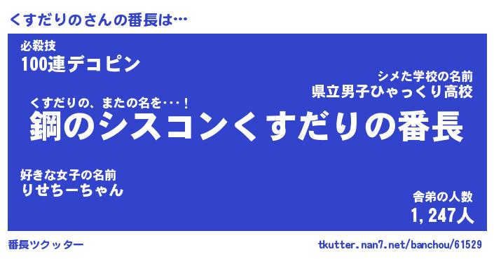 | ヘコむあだ名 | 『くすにー』『つくし』『くすっぺ』 |