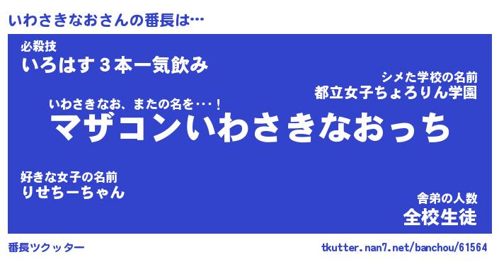 | ヒーロー風カッコイイあだ名 | 『スーパーイワサキナオ』『銀牙騎士イワ』 |