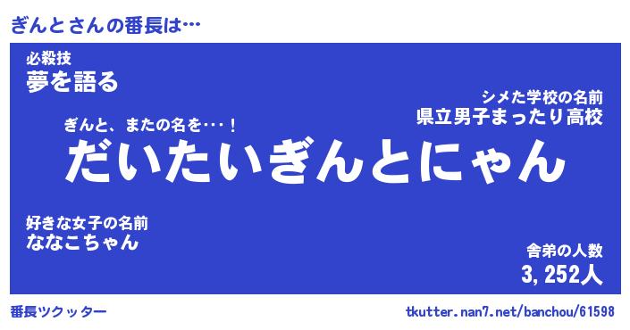 | 意味不明あだ名 | 『ペロリンぎんと』『ぎんとフォーエバー』 |