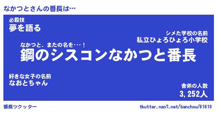 | 肩書あだ名 | 『なかつと社長』『なかつと国家主席』 |