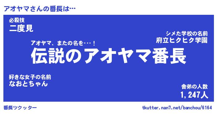 | 肩書あだ名 | 『アオヤマ社長』『アオヤマ総理大臣』 |