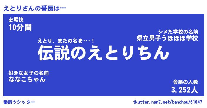 | 意味不明あだ名 | 『ペロリンえとり』『えとりフォーエバー』 |