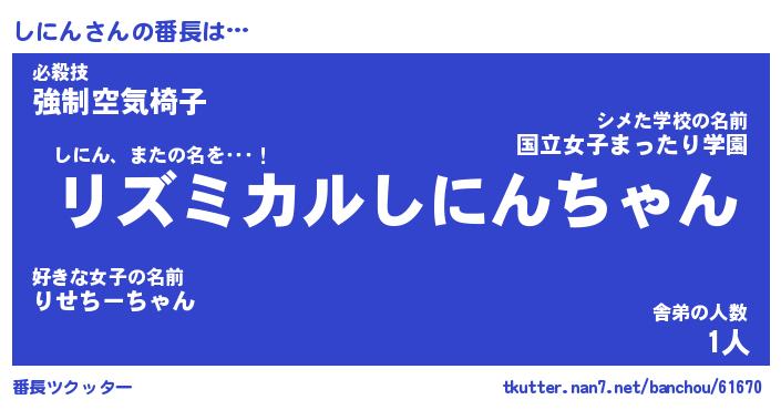 | 意味不明あだ名 | 『ペロリンしにん』『しにんフォーエバー』 |